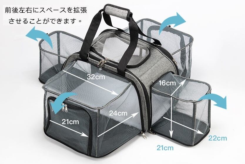 ・拡張可能なキャリーなので、空港などの狭い場所でもペットが伸び伸びと過ごせます。
